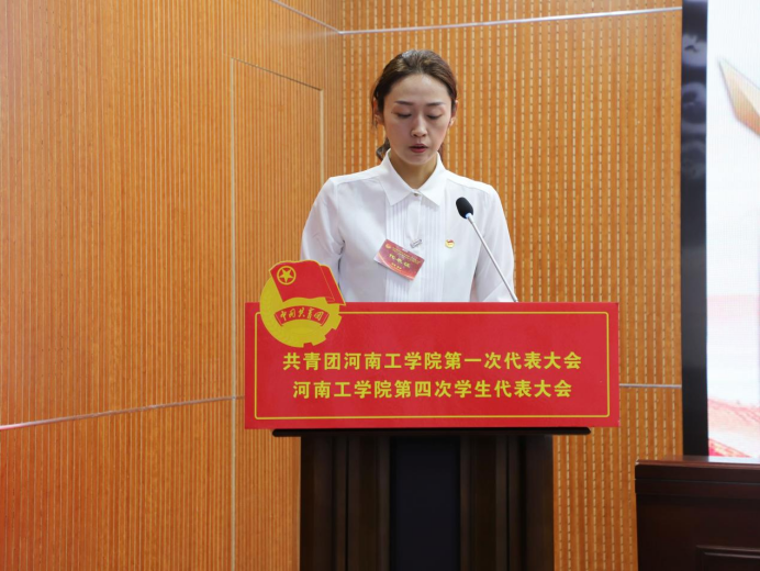 郭宇同志代表共青团河南工学院委员会做了题为《高举团旗跟党走,砥砺奋进新征程,共同谱写助力学校事业发展的青春华章》的工作报告。报告全面回顾了我校升格为本科院校以来河工青年走过的奋斗足迹,总结梳理了学校共青团工作取得的成绩,明确了今后一个时期的工作努力方向。学校各级团组织将继续秉承“厚德、博学、求实、创新”的校训,发扬“开拓进取、自强不息”的学校精神,团结带领广大团员青年,在全力推进高水平应用型大学建设的进程中奋勇建功。