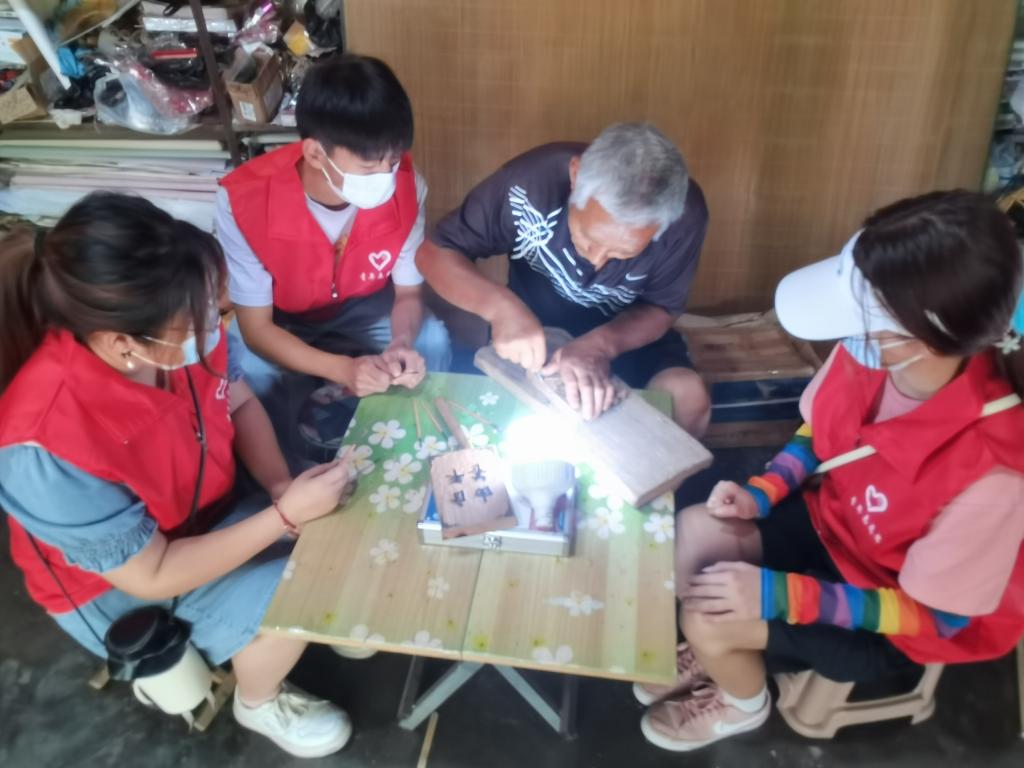当天,志愿者们一大早变来到了位于鹤壁市新区的苏奇灯笼画工作室,探寻非遗传承之一的灯笼画的制作技艺。在负责人的带领下,志愿者鱼贯而入走进工作室。在这样一个小小的房子里,堆满了陈旧的灯笼,这每一个灯笼都是由手艺人一个个亲手制作,耗费数日,从刻板到拓印、上色再到组装,每个灯笼上都包含这手艺人的汗水与辛苦。在手艺师傅的带领下,实践团队的成员纷纷亲身体验了制作灯笼画的过程,队员们在第一步刻板上面就发了难,刻刀在手中很难控制他刻出的方向,而且很容易刺到手。而手艺人,在这样一个小小的房间,仅凭一盏台灯、一只刻刀、一双手,年复一年的在梨木上用刻刀刻出各式各样的图案故事,从基础一步步编制、拓印、组装,看着他们满是老茧和伤口的手掌,很难想象他们非遗手艺人的不易。传承人向队员们讲起了苏奇灯笼画的历史和制作过程。在手艺人的手中,灯笼上的画栩栩如生,十二根高粱杆儿撑起了一个完整的灯笼。经传承人的讲解中我们了解到,刻板所需的木头必须是以梨木为底,所需蘸墨也必须是梨墨,这样才能使画面在纸张上保留的更完整、更长久。经过这些步骤,最后才能呈现出这样一个六寸高,四寸宽的灯笼。活动结束后,志愿者与传承人进行活动合照。参与这次活动的同学们说:“我认为志愿者活动非常有意义,参加完这次活动后不仅对非遗文化有了进一步认识,也从中体会到了中华文化的魅力,增强了传承弘扬非遗文化的责任心,同时也体会到了参加志愿者活动的乐趣,希望以后可以参加更多的志愿活动。”