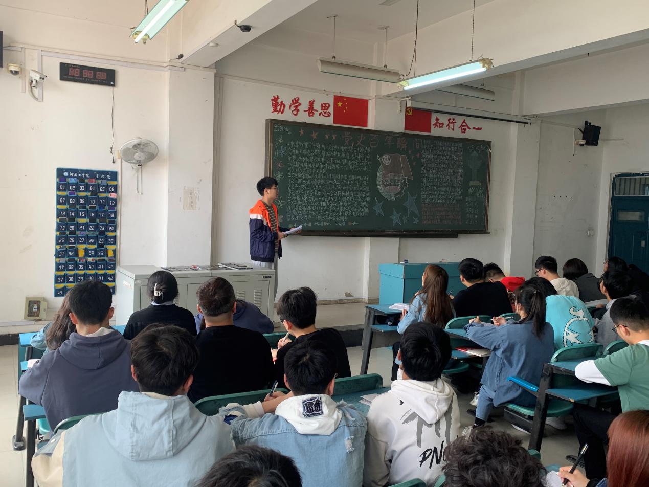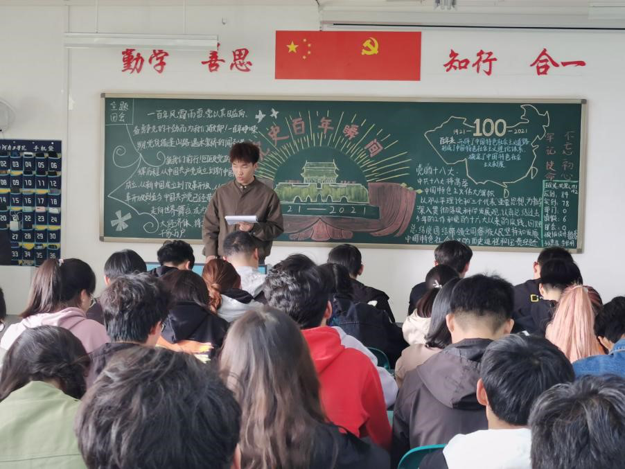 为学好党史这门“必修课”,各级团组织结合自身实际、发挥工作优势,把自我提高贯穿学习教育全过程,以严的学风和实的作风推动学习教育深入开展,着力激发团员青年学党史的内生动力。各团总支组织团员充分利用“课前十分钟”和团会时间开展党史理论学习,以主题团日活动为载体将理论学习引向深入。全校团员以团支部为基本单元,突出“三会两制一课”作用,推动学习教育融入日常、抓在经常;根据学生不同年级、不同专业的认知特点和学习习惯,分层分类开展学习。把组织化动员和网络化动员相融合,通过运用新媒体手段,把学习教育生动化;以“学党史”为基本点,以“强信念”为总开关,以“跟党走”为总目标,把党史学习与庆祝建党100周年活动等重点工作统一起来、贯通全年。