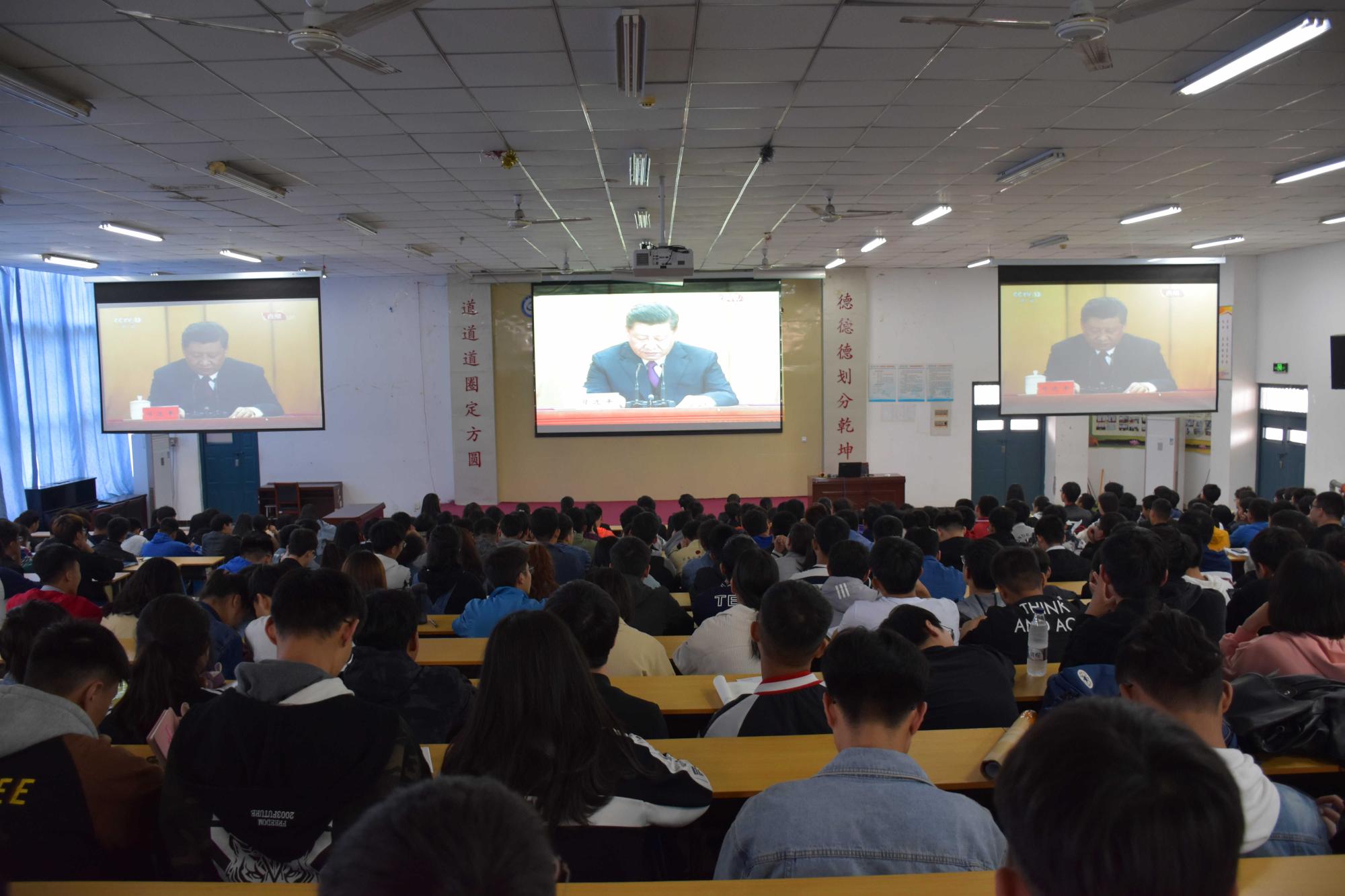 2019年4月30日上午,纪念五四运动100周年大会在北京人民大会堂隆重举行。我校各级团组织通过网络、电视、手机等多种形式收看了大会盛况,认真学习聆听习近平总书记在纪念五四运动100周年大会上的重要讲话。师生们一致认为,习近平总书记的重要讲话意义高远、语重心长,是激励青年奋勇前进的强大精神力量。