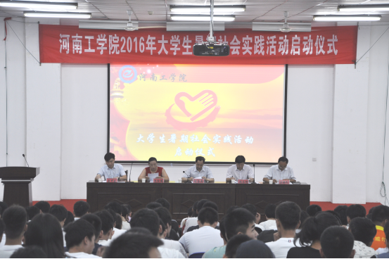6月29日下午,河南工学院2016年大学生“三下乡”暑期社会实践活动启动仪式在平原路校区A105会议室隆重举行。校领导刘云兵、相关职能部门负责人以及各系部师生代表约400余人一同参加了会议。