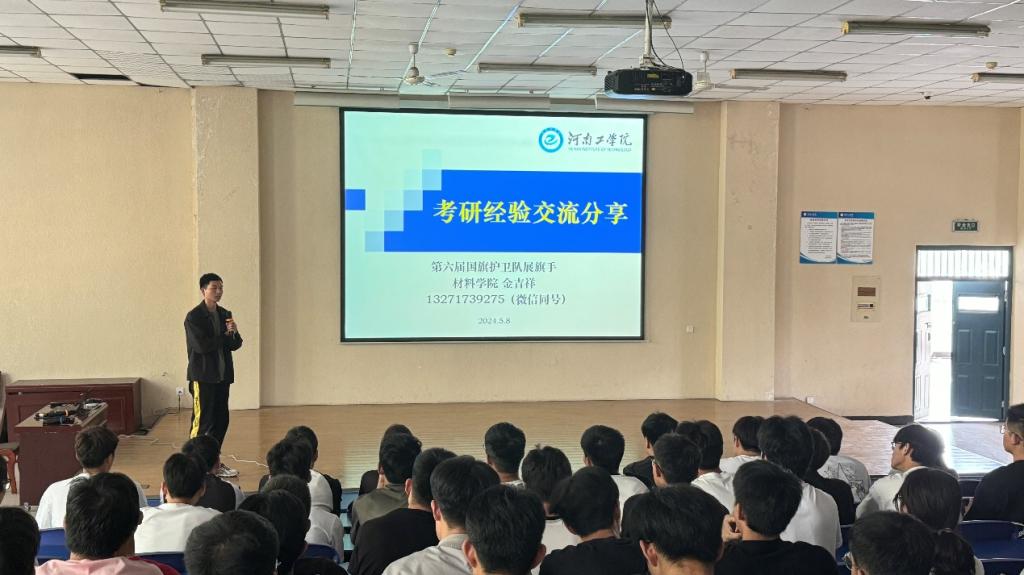 为帮助同学们明确未来前进方向、掌握高效学习方法,校团委于5月8日在教学一号楼A105举办专场学习经验分享会。原国旗护卫队优秀队员、材料科学与工程学院金吉祥和宁华,受邀为同学们分享考研与学习经验,校国旗护卫队全体成员参加了分享会。