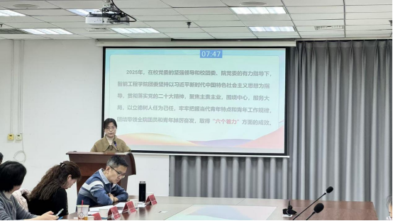 为深入学习贯彻党的二十届四中全会精神和习近平总书记关于青年工作的重要思想,落实全团抓基层工作导向,压实基层团组织书记工作责任,2025年12月18日至2026年1月8日,我校集中组织开展基层团组织书记述职评议考核工作。1月8日下午,我校基层团委(副)书记述职评议考核会在办公楼第四会议室进行,校党委副书记、副校长梁静,各基层团委(副)书记,校团委全体成员及各学院团员代表参加了本次会议。