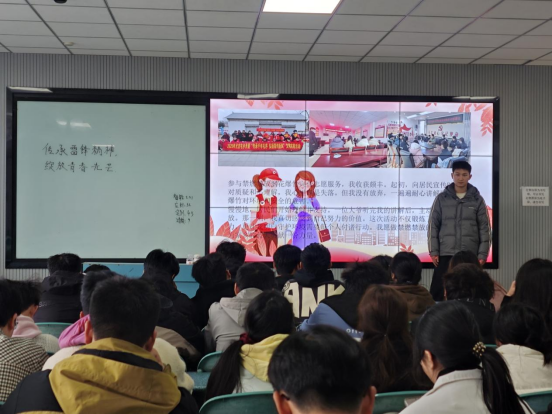 活动中,学生代表结合自身实践经历,分享了寒假期间深入基层、服务社会的生动故事。智能制造231班团支部张跃同学加入春运交通志愿服务队,协助交警疏导人流、维护秩序,在寒冬中为旅客提供暖心指引,深刻体会到“交通管理无小事,文明出行靠大家”的责任;机械设计242班团支部李承远同学走进家乡政务服务中心,参与档案整理、政策咨询等工作,从“象牙塔”到“服务窗”,他感慨“基层政务需要细致与耐心,更需贴近群众需求”;智能制造241班团支部段玉怀同学则聚焦社区环保,带领团队开展垃圾分类宣传、废旧物品改造活动,推动绿色理念深入人心,“用微行动凝聚环保大能量”成为她的实践座右铭。同学们在交通、政务、环保等多元领域践行青春担当,展现了当代青年与时代同行的精神风貌。