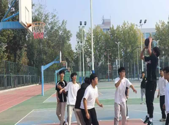 赛场上,球员们个个斗志昂扬,展开了激烈的争夺。精准的远投、华丽的突破、默契的挡拆、坚固的防守……每一个回合的攻防都扣人心弦。新生队员们虽初登赛场,却毫不怯场,用汗水与激情诠释着对篮球运动的热爱。场边,各班的啦啦队更是热情高涨,加油声、呐喊声、欢呼声此起彼伏,汇成了一首动人的青春交响曲,给予了场上队员无尽的力量。整个赛场不仅充满了竞争的紧张感,更洋溢着友谊与团结的温暖氛围。
