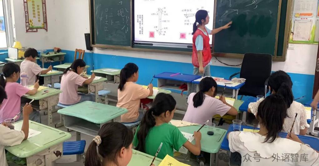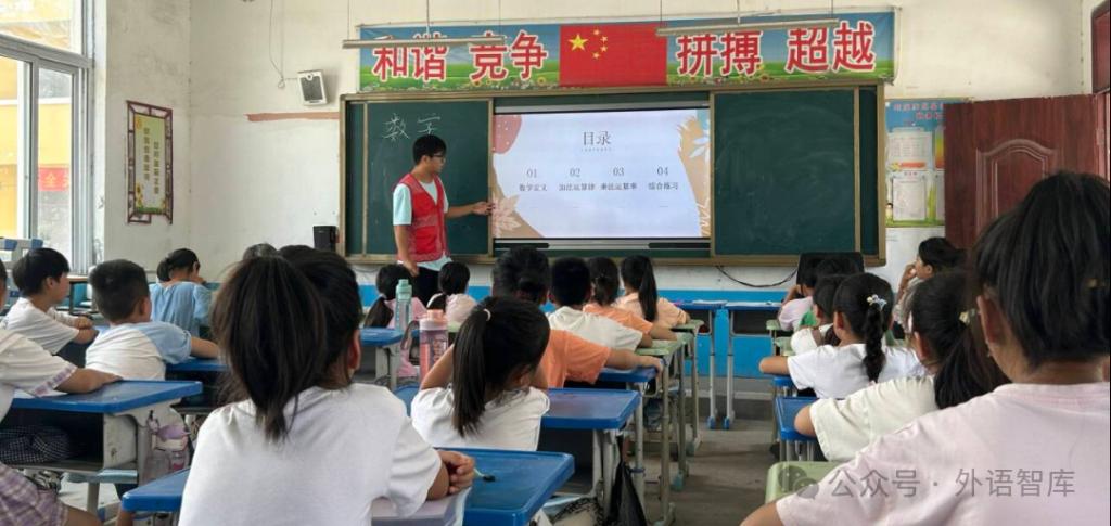 在英语课堂上,支教老师专注于教授学生描述人体特征的英文词汇,如“tall”(高的)、“short”(矮的)、“fat”(胖的)、“thin”(瘦的)等。通过生动的图片、有趣的动作演示以及互动练习,孩子们很快掌握了这些词汇,并能够用英语准确地描述身边同学的特征,课堂气氛活跃而欢快。数学课堂同样精彩。支教大学生们为孩子们深入讲解了加法和乘法的运算律,包括加法交换律、结合律,乘法交换律、结合律和分配律。队员们运用实例和趣味练习,帮助孩子们理解运算律的应用,提高了他们的数学运算能力和逻辑思维能力。为了增加学习的趣味性,支教团队还精心设计了趣味文字小游戏。孩子们在游戏中积极思考,发挥想象力,不仅巩固了所学知识,还培养了对文字的敏感度和创造力。在传统文化课程中,孩子们接触到了毛笔的书写方式。支教老师从握笔姿势、笔画顺序开始,耐心地指导孩子们一笔一划地书写。孩子们沉浸在墨香之中,感受着中国传统文化的博大精深。