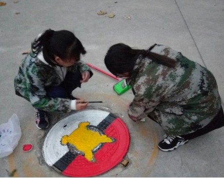 活动的开始,志愿者们带齐涂鸦工具并对参与人员进行分组分工。首先志愿者们前往校园马路对井盖认真清扫,随后对井盖进行了图案设计。通过志愿者们的团结合作,井盖上面呈现出了美丽的图案,黑色的柏油马路变得五彩缤纷,路上的行人将不再忽略井盖的存在。活动结束后,志愿者们整理涂鸦工具并清扫活动现场。在志愿者们积极配合下,活动取得圆满成功。