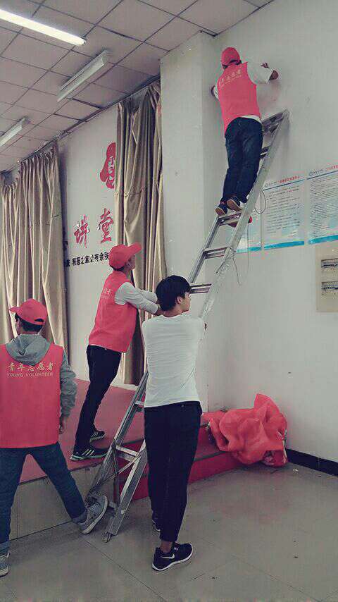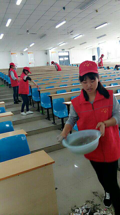 9月27日,我校青年志愿者协会组织数十名志愿者对我们的大学生艺术活动中心进行了全面细致的打扫。