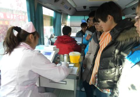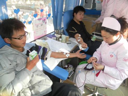 每年冬季是用血高峰。为了响应我市血站的号召,2012年12月23日上午9点,新乡市中心血站与校团委在宏力大道校区组织了义务献血活动。虽已是数九寒冬,但广大积极踊跃的志愿者们使整个活动现场充满了温暖与真情。