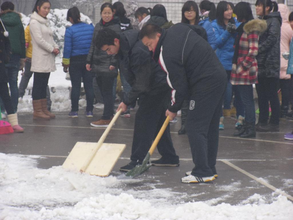 校团委朱松梅老师带头铲雪