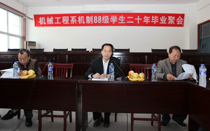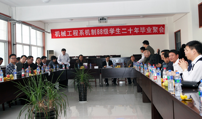 随后,在实字1号楼会议室召开了“机械工程系机制88级同学二十年聚会”座谈会。会上校党委副书记刘云兵代表学校做了重要讲话,他首先向回归母校的毕业生们表示热烈的欢迎,同时对毕业生们多年来对母校发展的支持和关注表示深深的感谢,随后他讲述了近几年来学校的发展状况和取得的辉煌成绩,并对毕业生们提出了殷切的期望,同时表达了美好的祝愿。接着李长胜主任和任泰安处长作为当年的班主任发表了语重心长的讲话,他们分别介绍了机械工程系和机械制造自动化专业的发展近况和取得的成绩,当他们和同学们一起忆起了二十年前的点点滴滴时,很多在场的毕业生感动的潸然泪下。最后六十多名毕业生分别进行了发言,他们曾经在机专这块土地上度过自己最美好的青春岁月,而今,都已成为社会上各行各业的翘楚。他们畅谈了20年来自己的工作、生活和对人生的感悟,在对母校日新月异的变化和发展表示惊喜之余,他们表达了对母校深深的感恩之情,感谢老师们的辛勤教育和培养,并希望老师们身体健康,希望机专的明天更加的辉煌,同时通过老师们转达了对学弟学妹的殷切期望:希望学弟学妹们能珍惜这短暂而美好的大学时光,好好学习专业知识,努力锻炼各方面的能力,早日成为社会的栋梁之才。