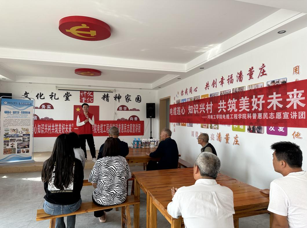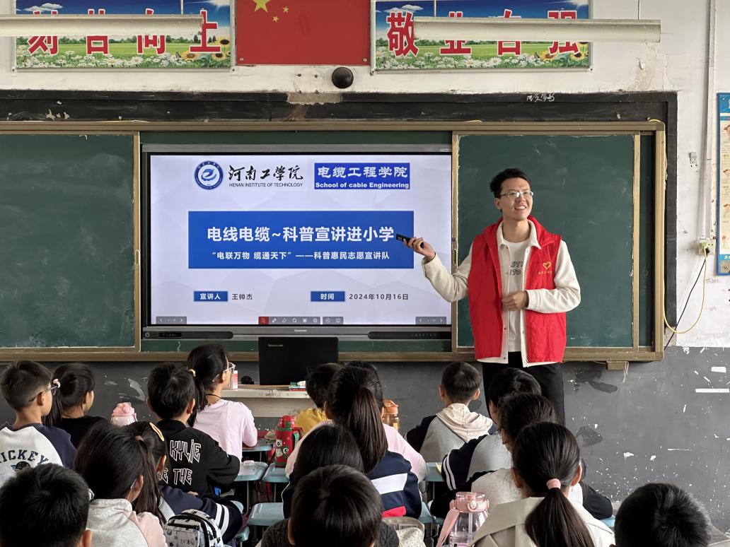 “电缆连心 知识兴村 共筑美好未来”科普惠民志愿宣讲团师生走进纸店镇东关小学,借助电缆模型、PPT、科普海报、宣传页等,向同学们讲解电线电缆的概念、用途,以及其在国民经济中“血管和神经”的重要地位,激发了青少年对电力科技的兴趣。在王庄村,志愿者们还向村民开展了用电安全知识科普,并通过互动提问、发放纪念品等进一步增强了村民们的自我保护意识。