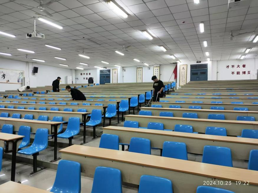 为积极响应学校关于营造良好学习生活环境、提升校园文化氛围的号召,校学生会于10月23日组织学生会成员清扫大学生文化艺术活动中心活动。此次活动旨在通过实际行动,展现学生会成员的服务精神,同时为师生提供一个更加整洁、舒适的艺术活动空间。
