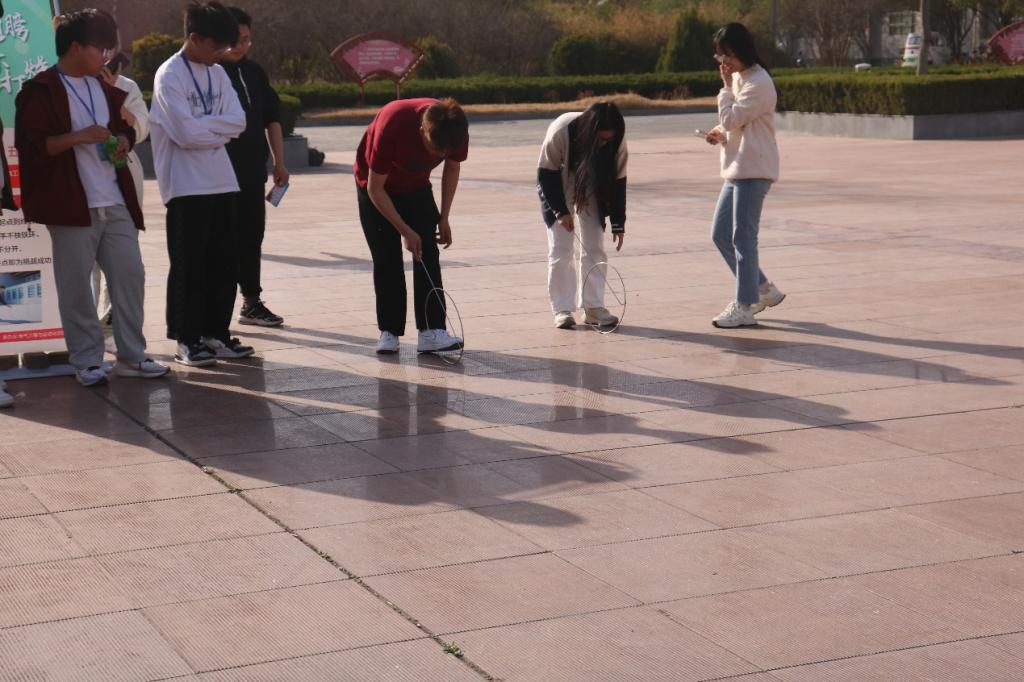 游园会现场,各项游戏吸引了众多学生积极参与,不少游戏区域都排起了长队。历史悠久的“竹竿舞”游戏依然大受参与者青睐,面对有节奏开合摆动的竹竿,每一次成功的跨越都伴随着欢呼声;“投壶游戏”中,大家共同讨论投掷技巧,相互鼓励,展现出团结的氛围;精彩刺激的“定车挑战”使大家努力地保持平衡,虽然失败过很多次,但成功的那一刻,胜利的喜悦溢于言表;“快速滚环”游戏中,大家一遍遍地练习,一次又一次尝试,场上一片火热的气氛;“你投我接”游戏,挑战者配合默契,场面热闹而有序。同学们投入游戏中时,整个校园都充满了欢声笑语,无论是挑战自我还是与他人合作,每个游戏都让同学们收获了快乐和成长。