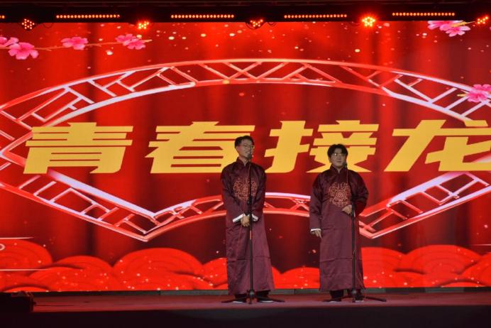 本场晚会分为“相遇河工,满‘新’欢喜”、“青春有志,怦然‘新’动”和“筑梦启航,‘新’欣向荣”三个篇章。每个篇章包含多种表演形式,节目内容精彩纷呈。晚会在校舞蹈队带来的开场舞《盛世欢歌》中拉开帷幕。歌曲《好男儿就是要当兵》旋律铿锵有力、曲调豪迈激昂,抒发了对军人保家卫国、互助友爱精神的赞美之情,表达了我校青年学子参军报国的无限热情。舞蹈《浮光》将古典与现代交织,为观众呈现了一场极致视听盛宴。相声《青春接龙》在轻松愉快的氛围中,带大家领略了丰富有趣的河工校园生活。华服展示《国令》展现了华服的美轮美奂,让在场观众沉浸式感受传统文化与时尚潮流的完美融合。朗诵《向祖国报告》与师生合唱《歌唱祖国》歌颂了伟大祖国的山河壮丽、民族团结、繁荣富强,道出了河工人深厚的爱国主义情怀和对祖国的美好祝愿。
