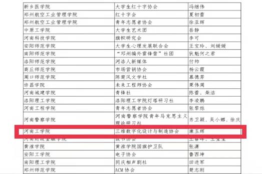 依照《中共河南省委高校工委 河南省教育厅关于开展2022年度“两创两争”活动先进集体和先进个人推选工作的通知》(豫高发〔2022〕34号)要求,经过社团申报、学校推荐、上级评选等环节层层选拔,我校三维数字化设计与制造协会在全省教育系统“两创两争”活动中荣获“文明社团”荣誉称号。
